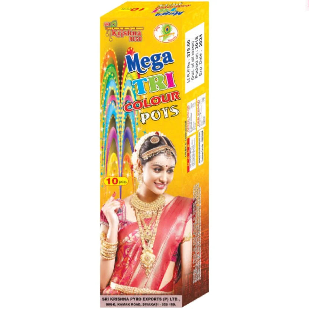 Mega Red/Tricolour Pots shower vibrant red and multi-color sparks, creating a stunning and festive display.